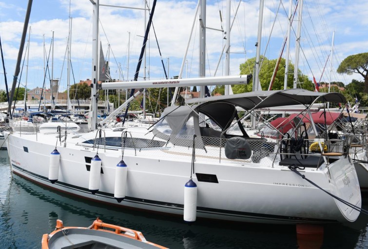 Gumenjak (Pomoćni čamac) (+ 2 vesla + pumpa), Vanjski/krmeni tuš, Sidro sa konopom, Sprayhood, Stol u kokpitu, Krmene ljestve, Pasarela (mostić, skala), Bimini top, Konopi za privez 4 kom., Električno sidreno vitlo, Pomoćno sidro (rezervno sidro), Bokobrani 10 kom., Hvataljka za muring (mezomariner), Crijevo za vodu, Pumpa za gumenjak (pomoćni čamac)