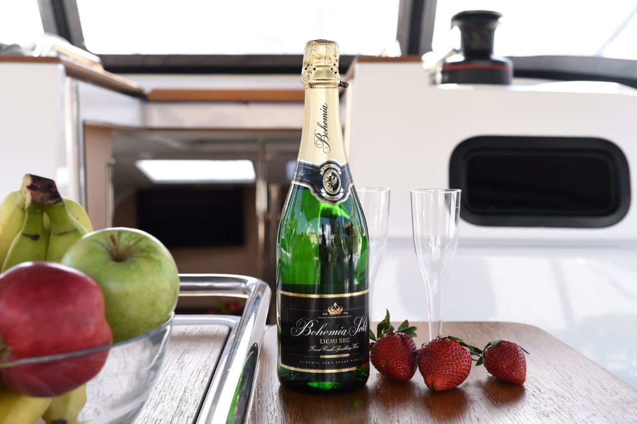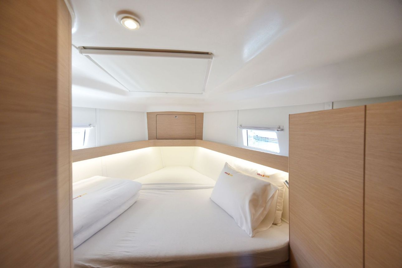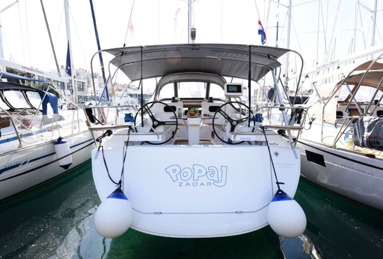 Sprayhood, Krmene ljestve, Pomoćno sidro (rezervno sidro), Platforma za kupanje, Bimini top, Vanjski/krmeni tuš, Stol u kokpitu, Gumenjak (Pomoćni čamac), Električno sidreno vitlo, Pasarela (mostić, skala), Glavno sidro, Glavni kompas na palubi, Sunčalište (paluba za sunčanje)